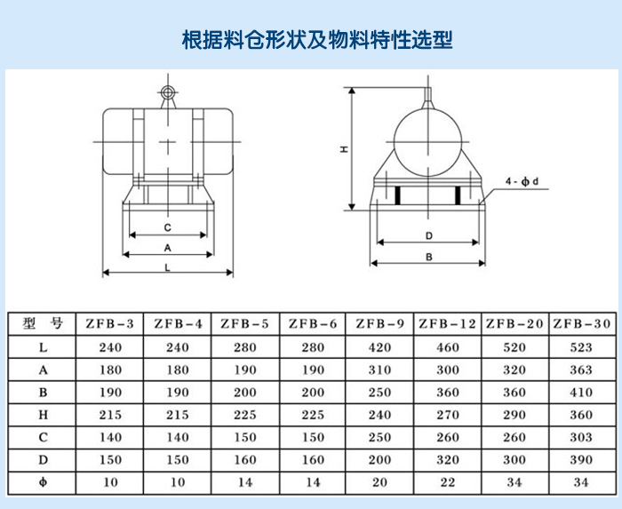 1、倉壁振動器選用時應根據料倉形狀及物料特性,選擇不同振動力的振動器。
