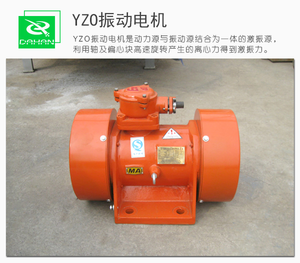 產品描述 :YZO振動電機概述 YZO振動電機是動力源與振動源結合為一體的激振源,臥式振動電機是在轉子軸兩端各安裝一組可調偏心塊,利用軸及偏心塊高速旋轉產生的離心力得到激振力。 YZO振動