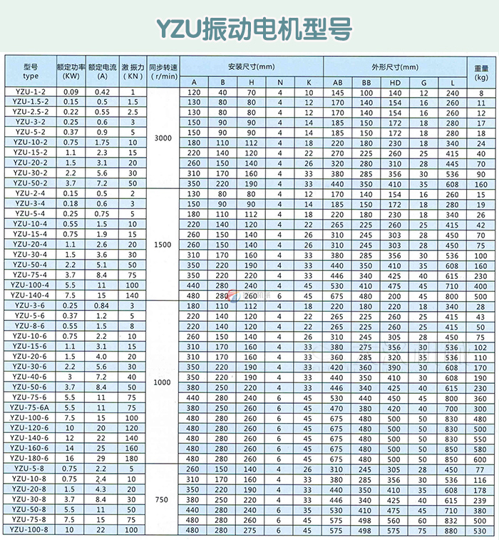 YZU振動電機型號說明