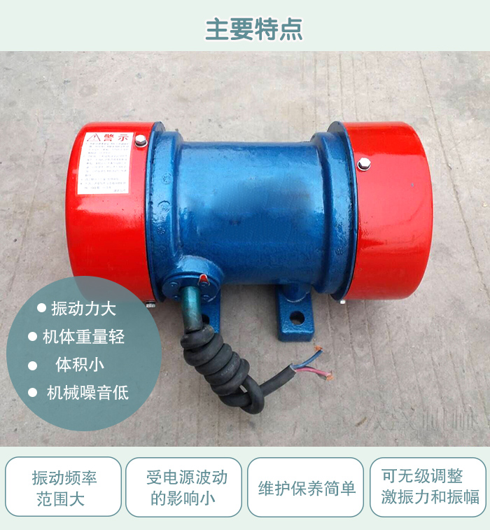 1、激振動力與功率配合得當,振動力大,機體重量輕,體積小,機械噪音低。